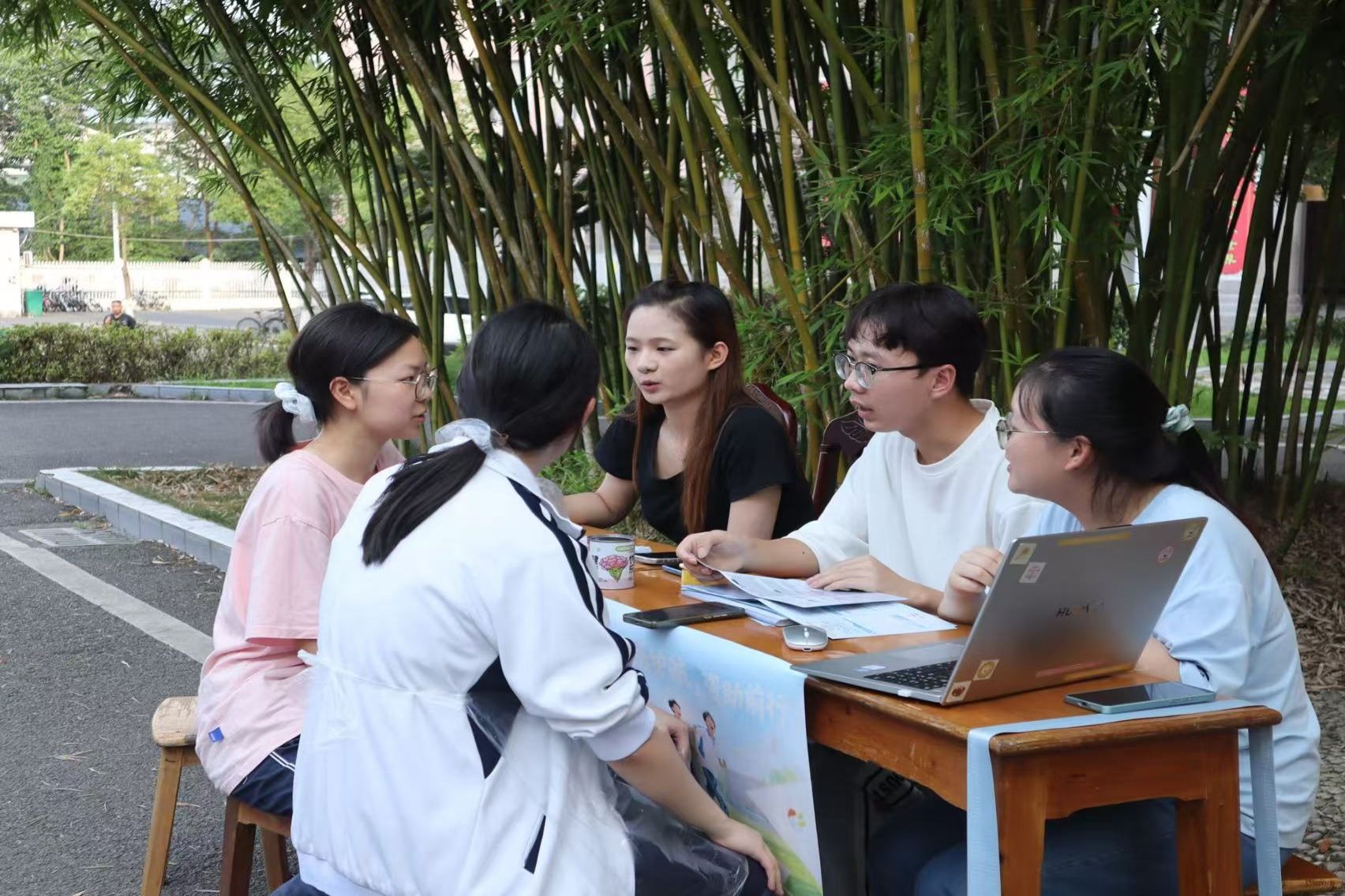 实践团成员讲解资助政策