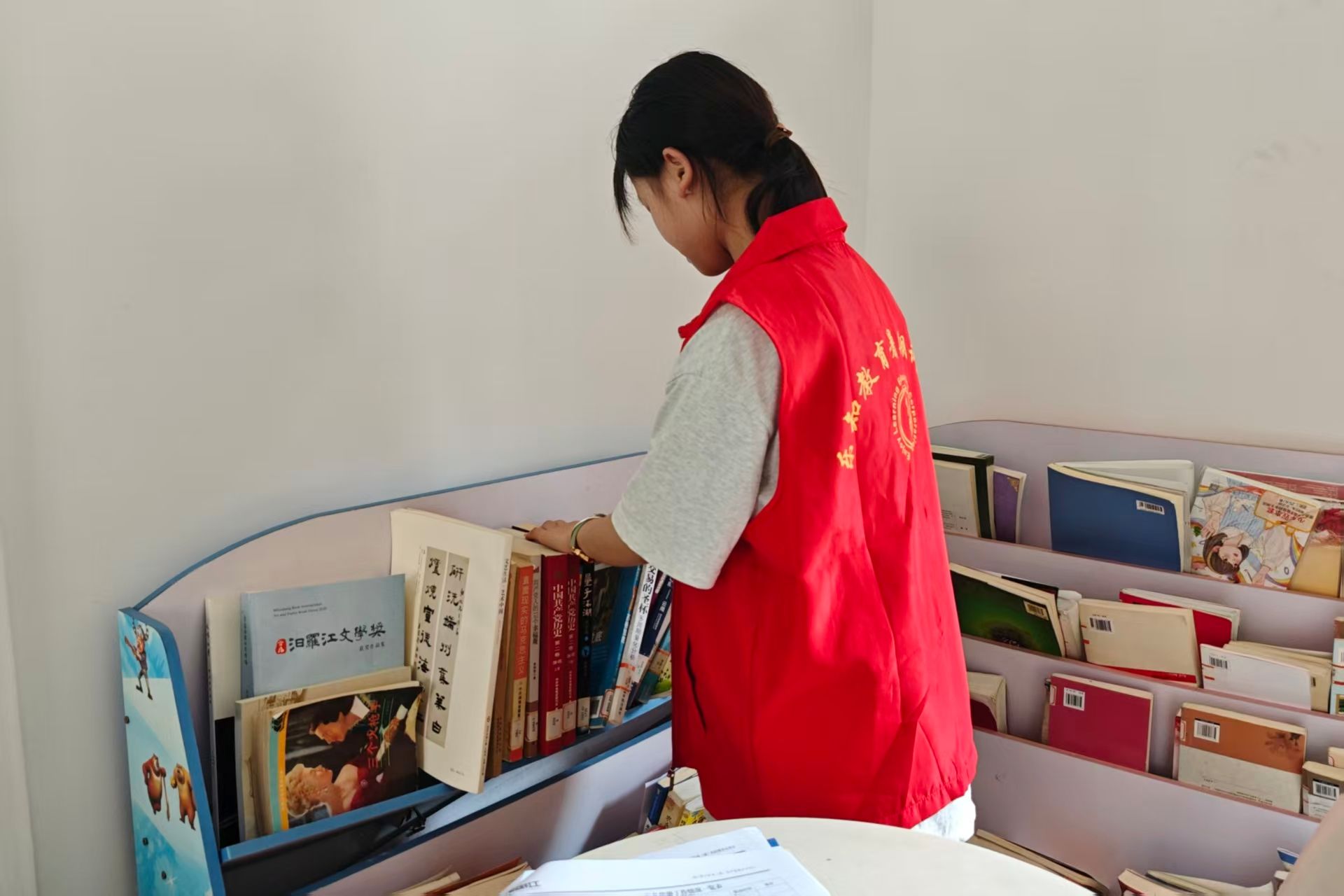 志愿者在整理书籍