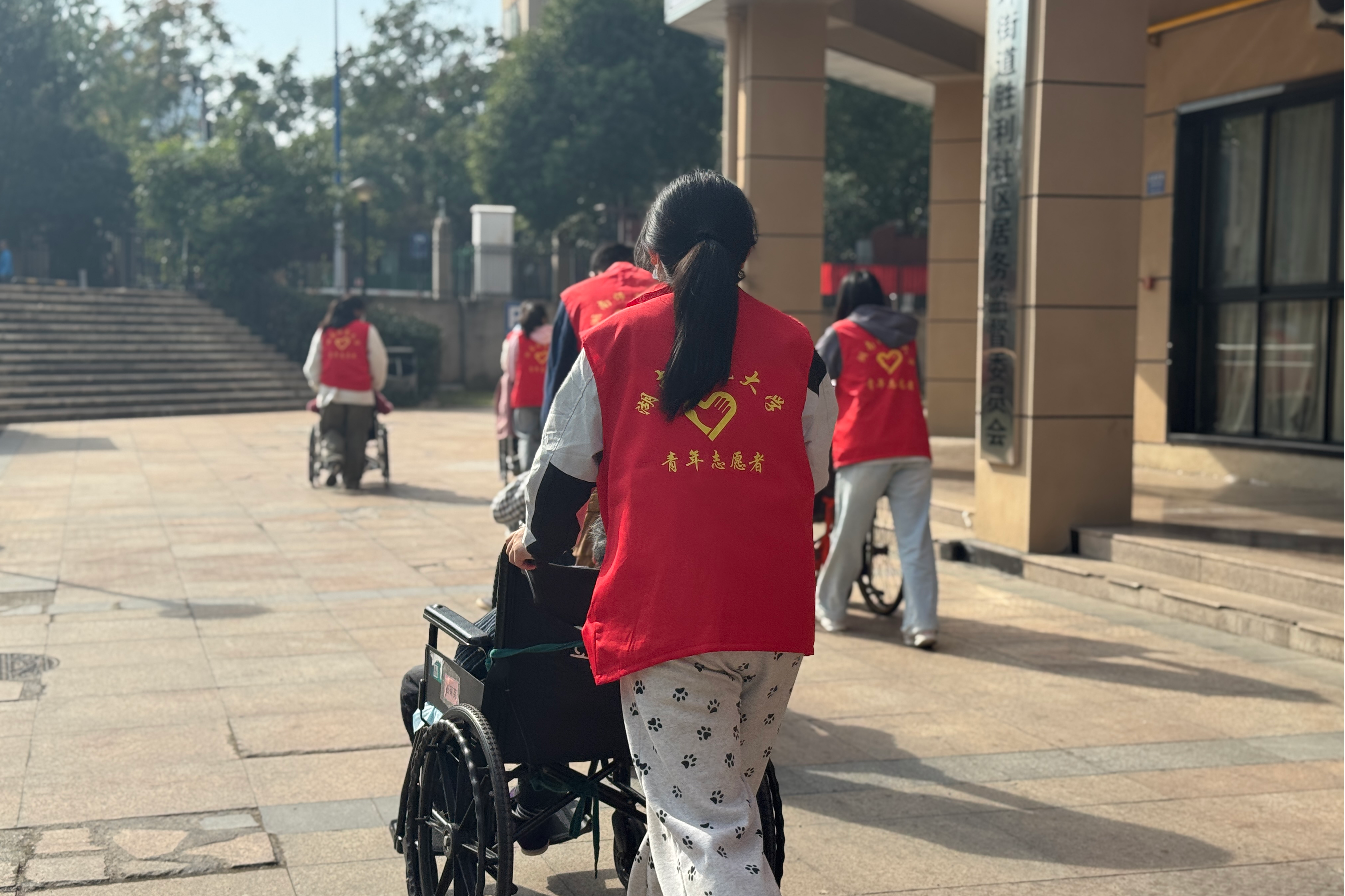 志愿者带领老人外出活动