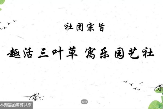 (通讯员 刘智慧 伍鼎载)11月13日下午,天天精品视频免费观看三叶草园艺社于腾讯会议线上举行第一次会员会议暨支部团员会议。生科院三叶草园艺社理事林海姿担任此次会议主持人。