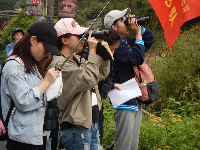 同学正在观察鸟类的特征