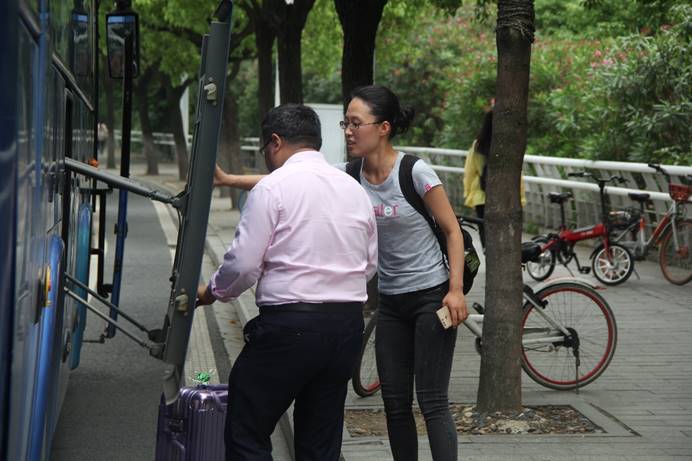 院党委副书记陈松和辅导员张金萍正在装运行李