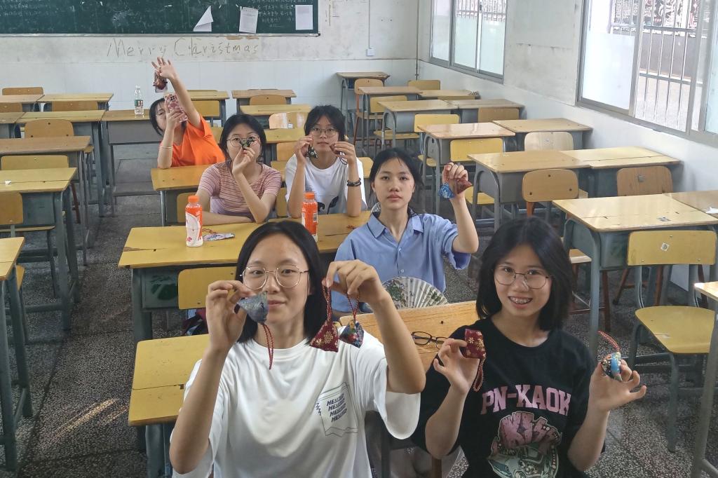 学生展示香囊作品