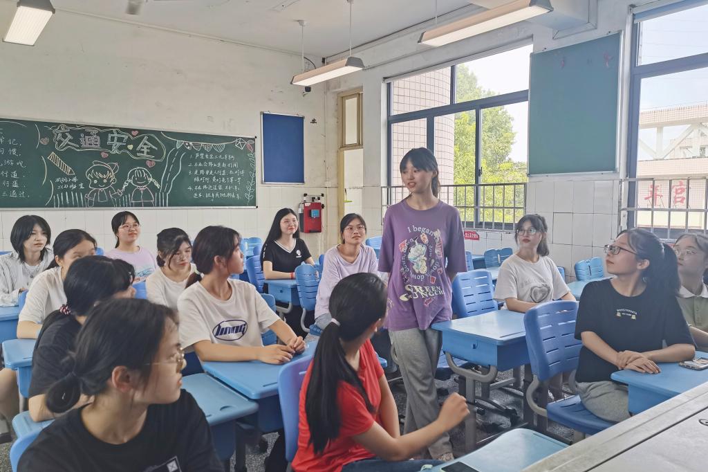 此次会议分为成员交流分享以及谌凤仪总结两部分。实践团成员互相交流支教中出现的问题,并彼此分享应对措施。谌凤仪总结实践团在此次支教中的优点与不足,提出如何调动学生上课积极性、如何管理课堂纪律等问题,并与成员一起探讨。