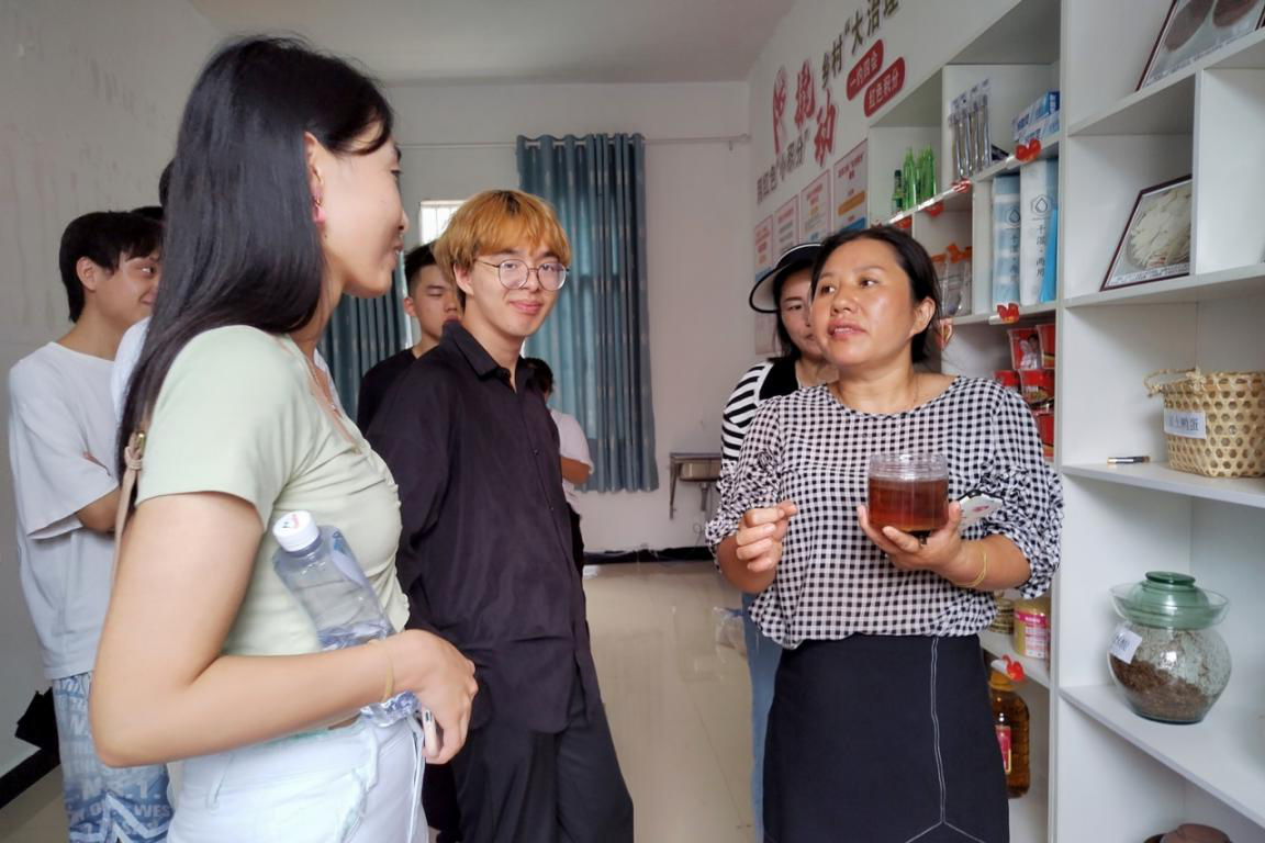 丁春兰向团队成员介绍蓝溪口村的积分超市和黄蜂蜜