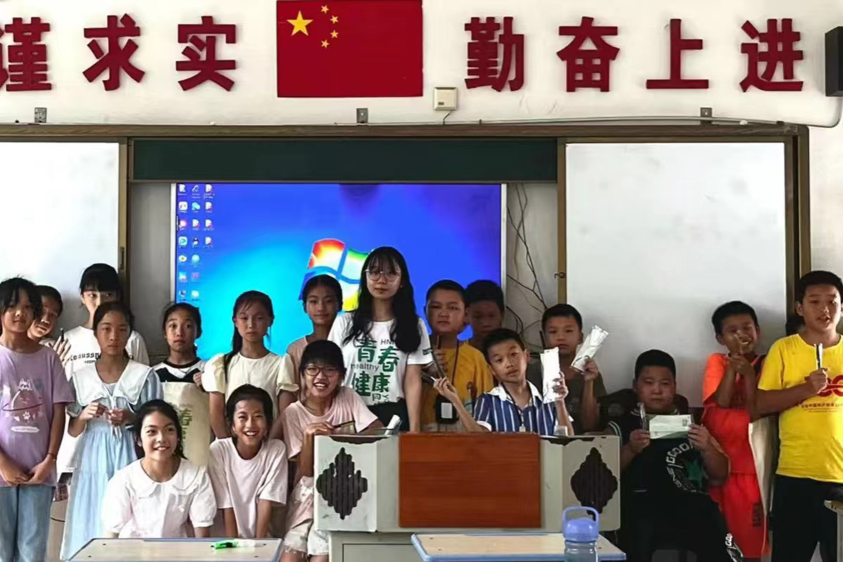 (通讯员 邓雅菲)7月21日,天天精品视频免费观看三叶草园艺社“凝聚星火,暖心助学”暑期社会实践团于郴州市苏仙区白露塘中心完小开展青春康教育课程。实践团成员谭莎莎担任此次课堂主讲人。