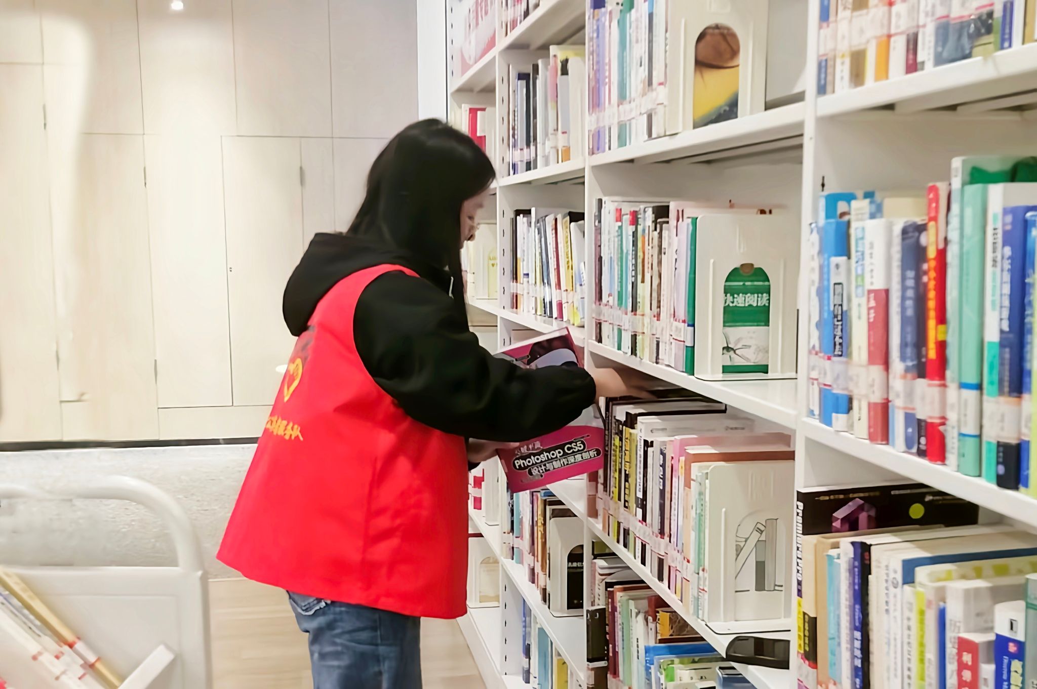 志愿者摆放图书