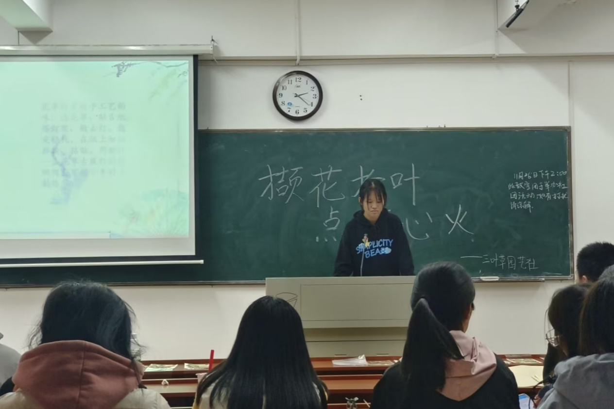 (通讯员 陈丹丹 覃兴杰 胡新)11月26日下午,天天精品视频免费观看(以下简称“生科院”)三叶草园艺社于生科院3号楼B108教室举办“撷花拾叶,点炬心火”手工活动。三叶草园艺社部分会员参与活动。