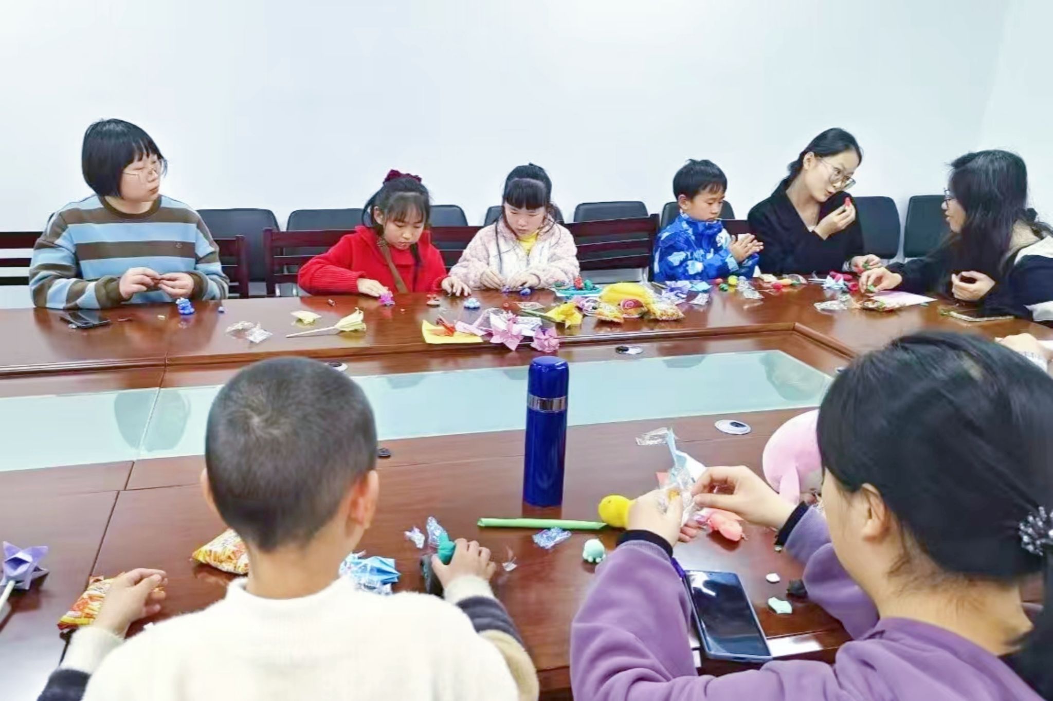 活动分为折纸和黏土制作挂件两个环节。志愿者们为小朋友分发折纸,手把手教会小朋友折物品,在志愿者们的带领下,小朋友们成功折出大风车、郁金香和蓝莲花等物品。同时志愿者们还为小朋友们准备了轻粘土,教小朋友们用轻黏土制作小黄鸭、章鱼、西瓜和柠檬等小挂件。小朋友们也发挥想象,创造出了一些有特色意义的作品。小朋友们认为,此次活动能学会折纸与做粘土很有意义也很有趣,志愿者们也表示很喜欢跟小朋友们一起做手工。