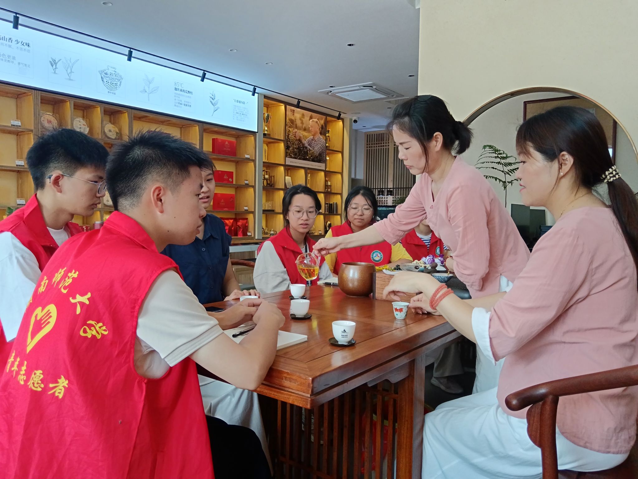 实践团成员前往炎陵当地白茶直营店,并采访店主。店主为成员们介绍店里销售茶叶类型及各种茶叶的特色,如白茶、野生红茶、老茶树茶、炎陵红茶等。她表示炎陵红茶作为当地特产,有“甘鲜味、花蜜香”之美誉,它曾代表株洲参加杭州国际茶叶博览会,并在第四届“国饮杯”评比中获一等奖。在谈及茶树的培养时,店主表示茶树的生长受到阳光、土壤、降水、温度等多重自然因素影响,对环境要求较高。其中,“神农白茶”每年只有十几天的采摘期,可采摘部分为一芽一叶,因此产量少、价格较高。随后,店内茶艺师为成员们简单介绍泡茶的步骤以及各个步骤的含义。成员们品尝部分当地特色茶水,并与工作人员合影留念。