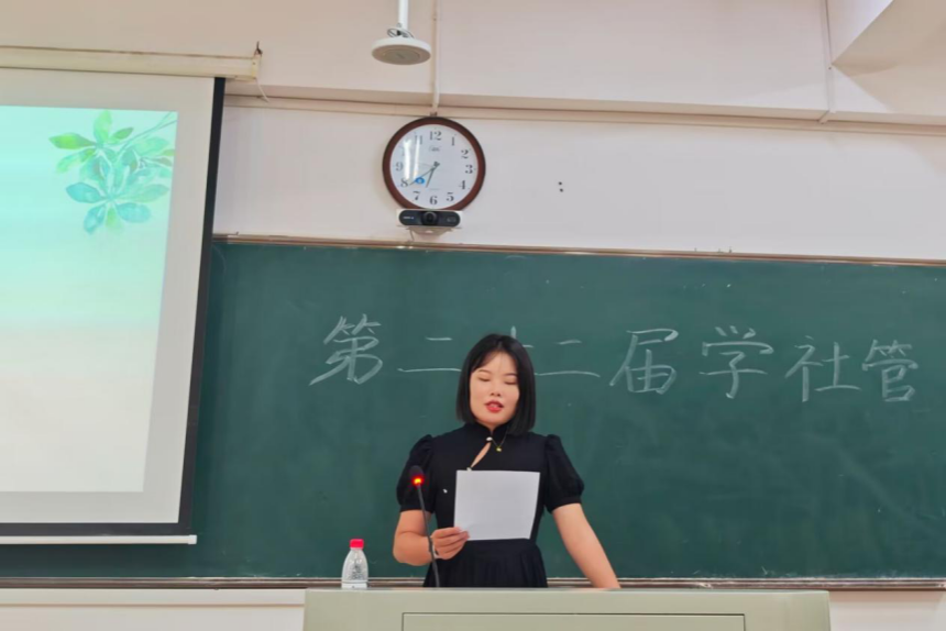 吴晴发表讲话,祝贺学社管喜得佳绩,并指出2023年度学社管在活动组织等方面存在不足,提出加强团队建设、创新活动形式、强化责任意识等改进方法。同时,吴晴表示希望部门成员和社团成员团结合作,展现学社管风采,为生科院社团发展贡献力量。赵琳慧对学社管进行介绍,并表示希望学社管成员要树立集体荣誉感,处理好学习与工作的关系。为帮助新加入学社管的成员熟悉今后的工作,各部门负责人及社团理事长对部门和社团的工作进行简短的介绍,部门及社团成员依次上台进行自我介绍。参会人员进行大合照,宣告此次大会结束。