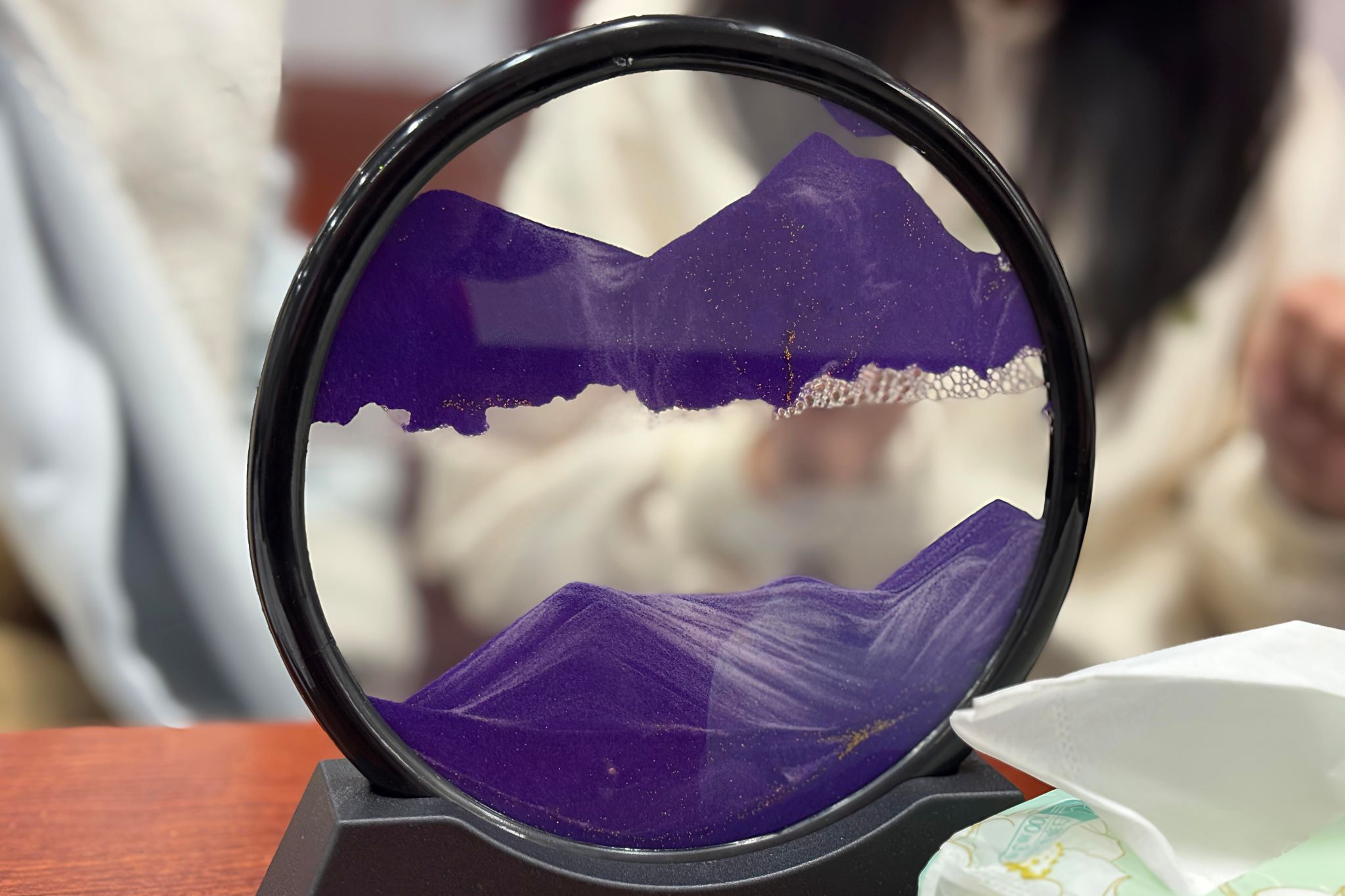 讲解人员借助PPT,围绕流沙画制作的理论知识、所需材料、操作步骤及注意事项展开系统讲解,同时展示优秀成品范例,让同学们清晰掌握流沙画的制作关键与创作思路。社团工作人员全程做好协助工作,同学们有序领取流沙、相框、调和工具等材料。在创作过程中,大家围绕流沙流速控制、色彩搭配组合等实际问题相互探讨,充分发挥创意亲手制作专属流沙画作品。现场涌现出诸多各具特色的优秀创作成果。活动尾声,全体参与人员共同合影留念。