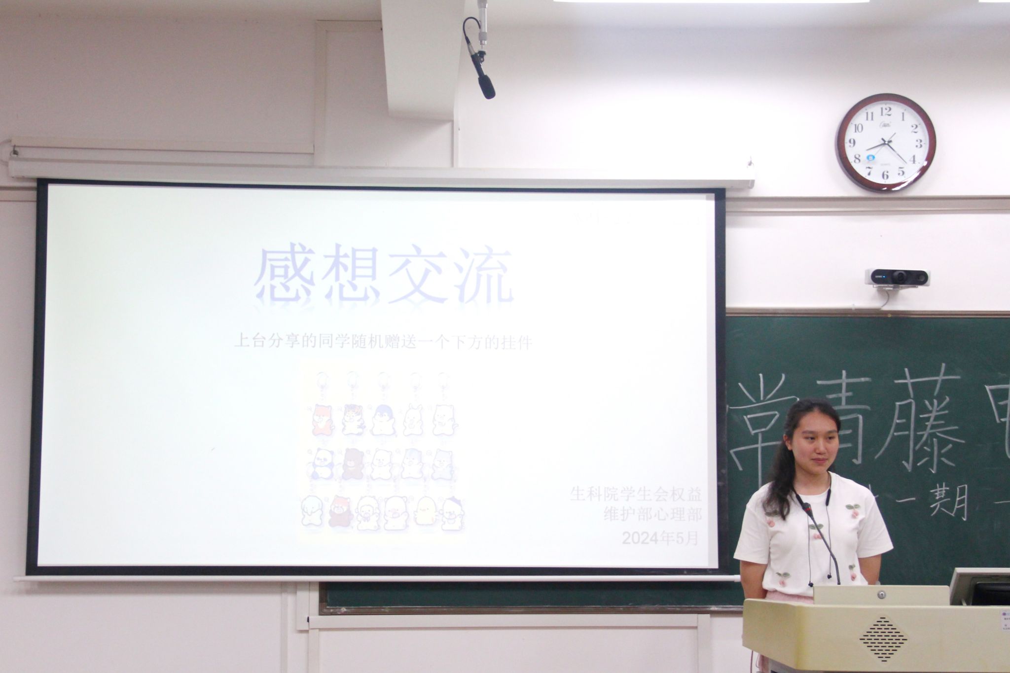 (通讯员 赵梦冉 章超凡)5月19日晚,天天精品视频免费观看学生会于生科院三号楼B107教室举办“常青藤”影院心理电影沙龙第十一期观影活动。生科院2021级、2022级、2023级部分学生参与此次活动。生科院学生会权益部干事担任此次活动主持人。