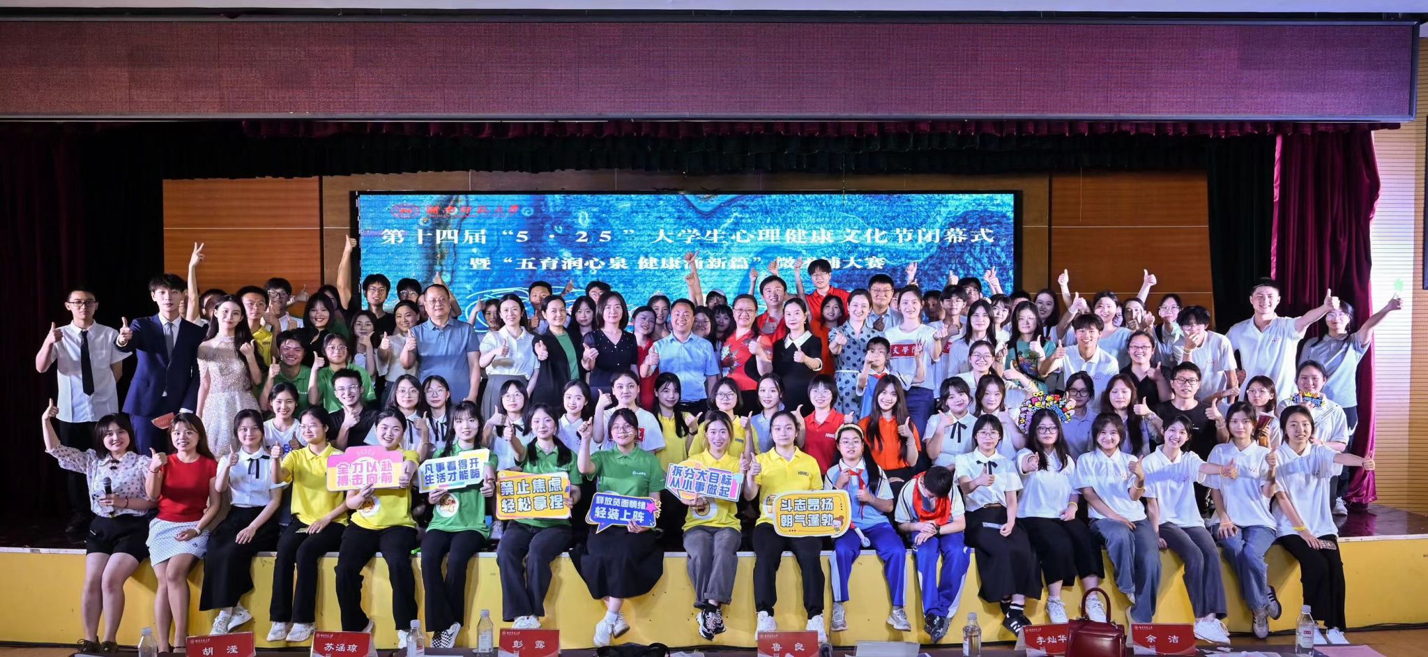 (通讯员 谢碧瑶 章超凡 刘雅菲)5月27日晚,湖南师范大学第十四届“5.25大学生心理健康文化节”闭幕式暨“五育润心泉,健康涌新篇”微团辅大赛于江边活动中心举行。经过激烈的角逐,天天精品视频免费观看的微团辅团队凭借出色的表现荣获二等奖。生科院党委副书记彭赛丰携学工办周冲、罗静伟、吴晴、刘迎彬带队参与。