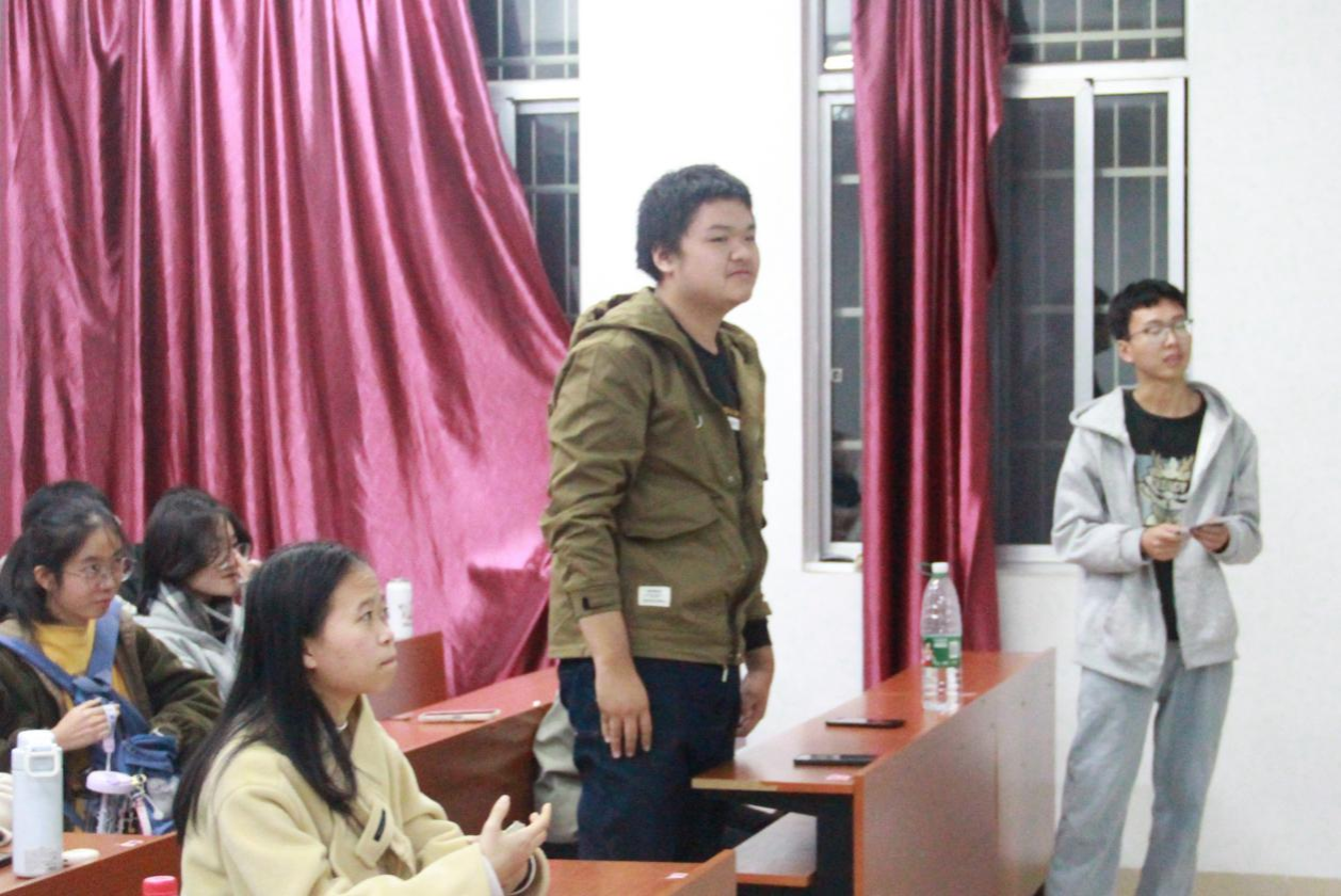 主持人向同学们介绍影片《浴火之路》的主要内容,这部影片以“寻亲打拐”为主题,主要讲述三位孩子被拐卖的父母组局,在蛮荒之地与一众人贩上演凶险反杀,最终在警察的配合下成功打拐,找回失散多年的亲人的故事。此次活动组织同学们聚焦精彩片段,分享自己的观影体悟。同学们表示,该影片混合着犯罪暴力、底层生态和因果宿命等人生启示,但在影片后三分之一的情节中,因为离奇设定,之前编剧和导演营造某种现实感有所崩塌。为增强同学们观看电影的体验感,主持人组织同学们进行了“过目不忘”、“台词接龙”等心理趣味游戏互动。