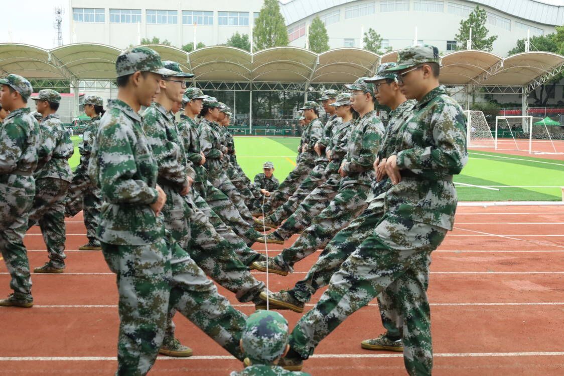 图为新生们进行了齐步走训练,在统一的指令下,他们脚步轻快有力地行进,双臂自然下垂,腰背挺直,步伐规整一致。