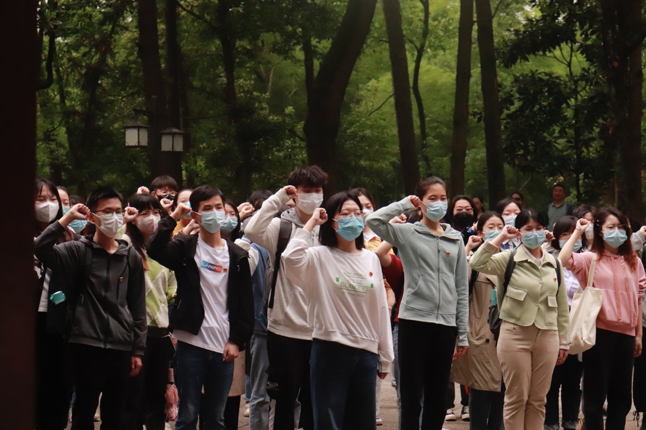 此次活动分为杨开慧故居及陵园参观学习、举行入党宣誓仪式、任弼时纪念馆、故居参观学习三个部分。支部成员在党支部的有序组织下于杨开慧陵园前坪举行入党宣誓仪式,仪式由李翠玲宣读预备党员名单、韩玉祺带领预备党员进行入党宣誓、舒兰钧代表发言、彭赛丰总结讲话四个部分组成。支部成员在参观学习中进一步了解了“骆驼精神”内涵以及中国共产党员高尚的革命情操,并明白了作为一名青年党员也需要铭记任弼时一生践行共产主义、砥节砺行的精神。