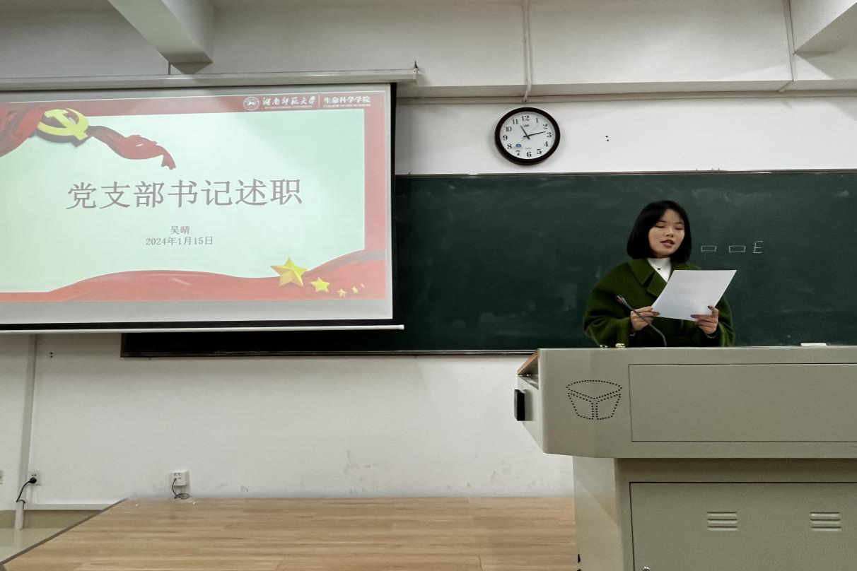 党支部书记吴晴、周冲、罗静伟从支部情况、工作活动、主要问题和努力方向等方面回顾2023年支部建设的工作内容,总结党建工作的成就和不足,并对2024年党建工作进行展望。支部党员通过批评和自我反思,进一步明确了自身目标和规划;支部党员通过观看党员教育片,帮助自己深刻领悟到团结奋斗的重要意义,进一步增强了自身使命感和责任感。