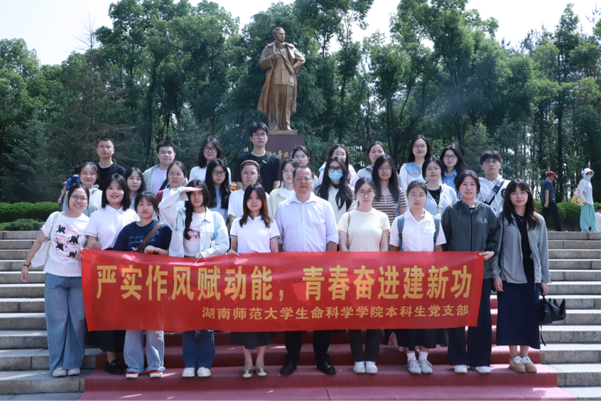 全体党员参观毛泽东同志纪念馆和故居,通过珍贵的历史文物、影像资料和生动讲解,深刻体悟毛泽东同志“全心全意为人民服务”的初心本色,赓续“坚定信念、敢为人先”的韶山精神。在刘少奇同志纪念馆,党员们通过《论共产党员的修养》珍贵手稿、建国初期国务档案等实物展陈,系统学习老一辈革命家"扎根群众、实事求是"的执政理念。此次主题教育实践活动将红色教育与专业培养深度融合,通过沉浸式学习强化了毕业生的身份意识与责任担当。彭赛丰表示:“毕业生党员即将踏上社会工作岗位,更要将此次红色教育中淬炼的严实作风转化为干事创业的动力。希望同学们始终牢记习近平总书记对青年的嘱托,把‘全心全意为人民服务’的宗旨融入专业实践,在生命科学领域深耕细作,以科技创新服务人民健康需求,用实际行动践行‘强国有我’的铮铮誓言。”