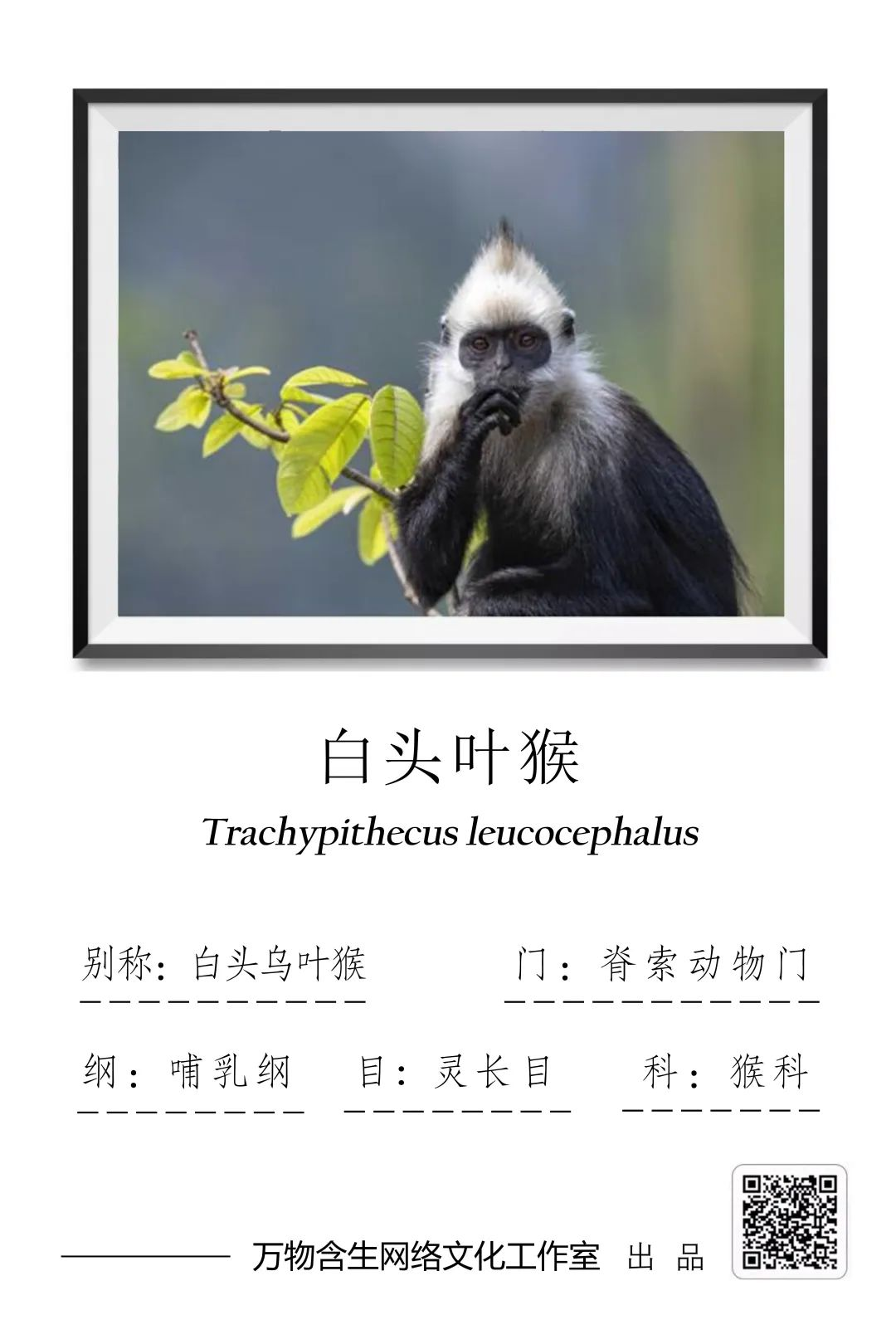 图1 湖南师范大学动植物标本馆白头叶猴标本
