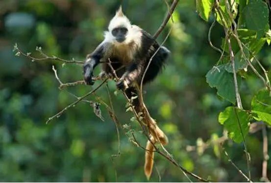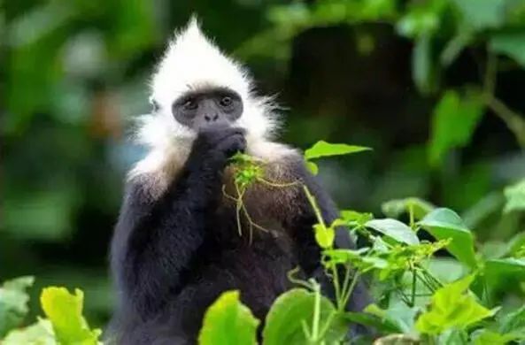 4、食性:白头叶猴顾名思义叫做叶猴,就是因为它是吃树叶的。其以植物嫩叶,枝条为食,它的食物80%-90%都是树叶。在它生活的环境里面,有各种各样树叶,每个季节有不同的偏好,喜欢吃什么树叶,就采摘一些什么样的树叶,而且采食量并不高。