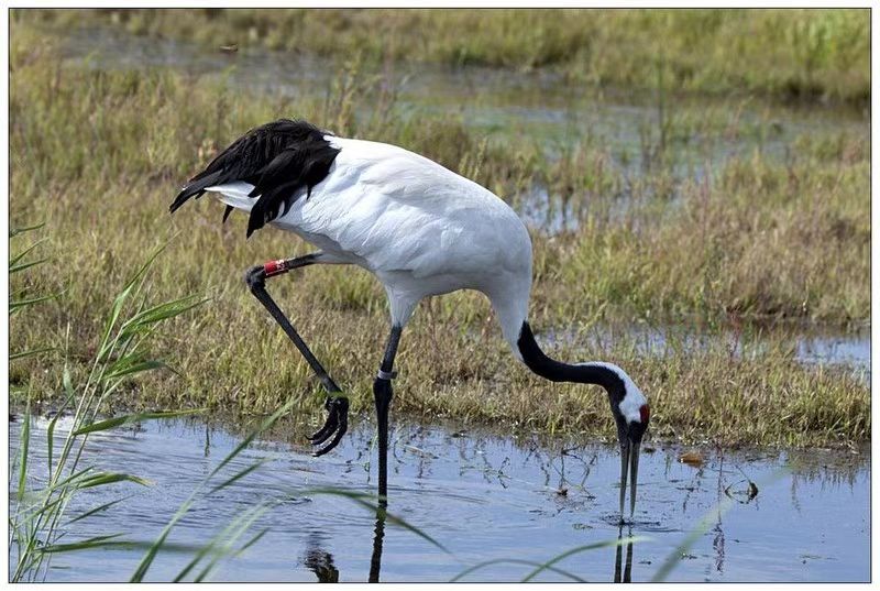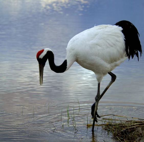 丹顶鹤的食性很杂,主要有鱼、虾、水生昆虫、软体动物、蝌蚪、沙蚕、蛤蜊、钉螺以及水生植物的茎、叶、块根、球茎和果实等等。