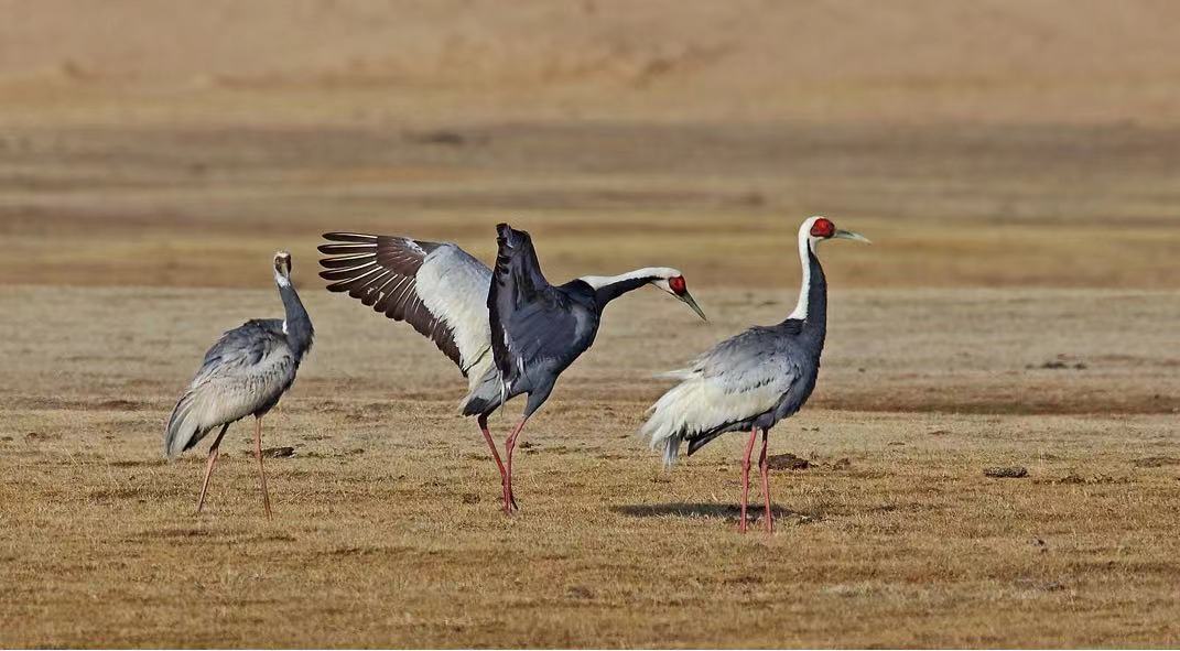 白枕鹤(Grus vipio)为鹤形目鹤科鹤属的鸟类,又称为红面鹤,是国家Ⅰ级重点保护野生动物,被IUCN列为易危(VU)物种。