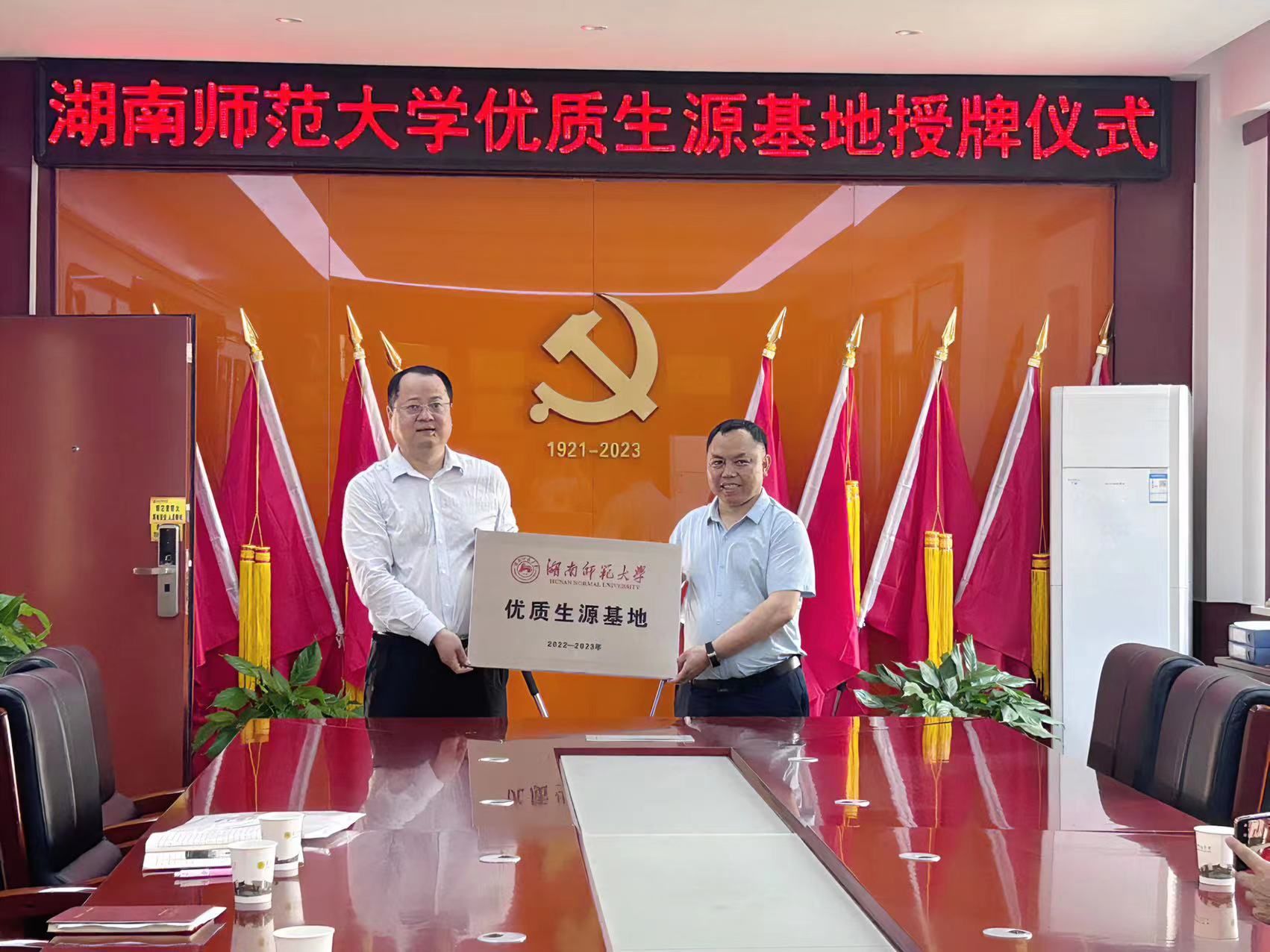 随后,与会双方举行了湖南师范大学“优质生源基地”授牌仪式。