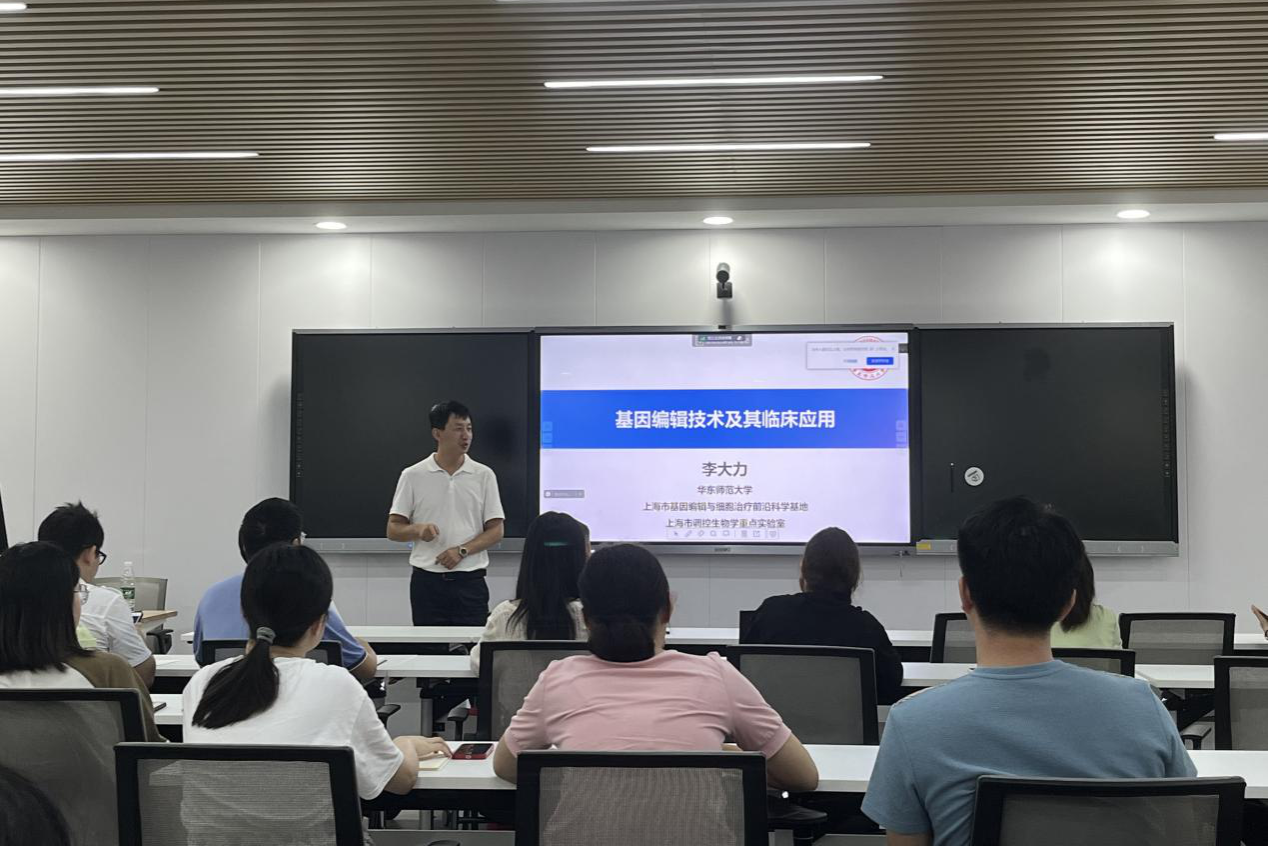 (通讯员 罗静伟 张鑫月)9月12日下午,华东师范大学李大力教授予生科院三号楼B308智慧教室召开招生宣讲会,并举行基因编辑技术及临床应用的学术报告。湖南师范大学杰出校友李大力,现任华东师范大学天天精品视频免费观看研究员、博士生导师和上海市基因编辑与细胞治疗前沿科学基地主任。李大力教授和湖南师范大学天天精品视频免费观看吴秀山教授一同出席此次活动。李大力担任此次宣讲会主讲人。