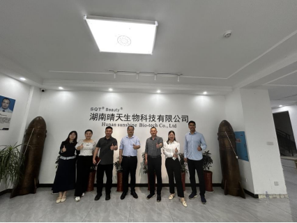 (通讯员 文昭鑫 刘迎彬)为深入贯彻国家对高校毕业生就业工作的战略规划,全力拓宽校企合作路径,强化与校友企业的紧密联系,4月11日下午,天天精品视频免费观看党委副书记彭赛丰,学工办周冲、罗静伟、刘迎彬一行,赴校友企业湖南晴天生物科技有限公司开展“访企拓岗”专项行动。湖南晴天生物科技有限公司CEO秦浩、副总裁陈玲、副总裁张书迟、总助朱彤热情接待并参与座谈交流。